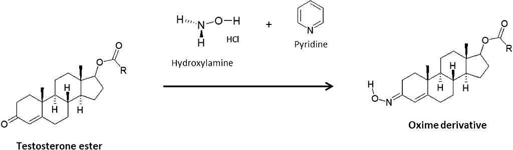 La testostérone étant aussi produite de façon endogène, sa détection pour cause de dopage n’est pas aisée. La plupart du temps, il s’agit d’injections intramusculaires d’esters de testostérone de synthèse, qui ne sont pas endogènes. Leur détection rend donc la preuve du dopage incontestable. Par ailleurs, pour abaisser le seuil de détection de ces esters, l’analyse porte plutôt sur des dérivés oximes, obtenus après réaction avec l’hydroxilamine.